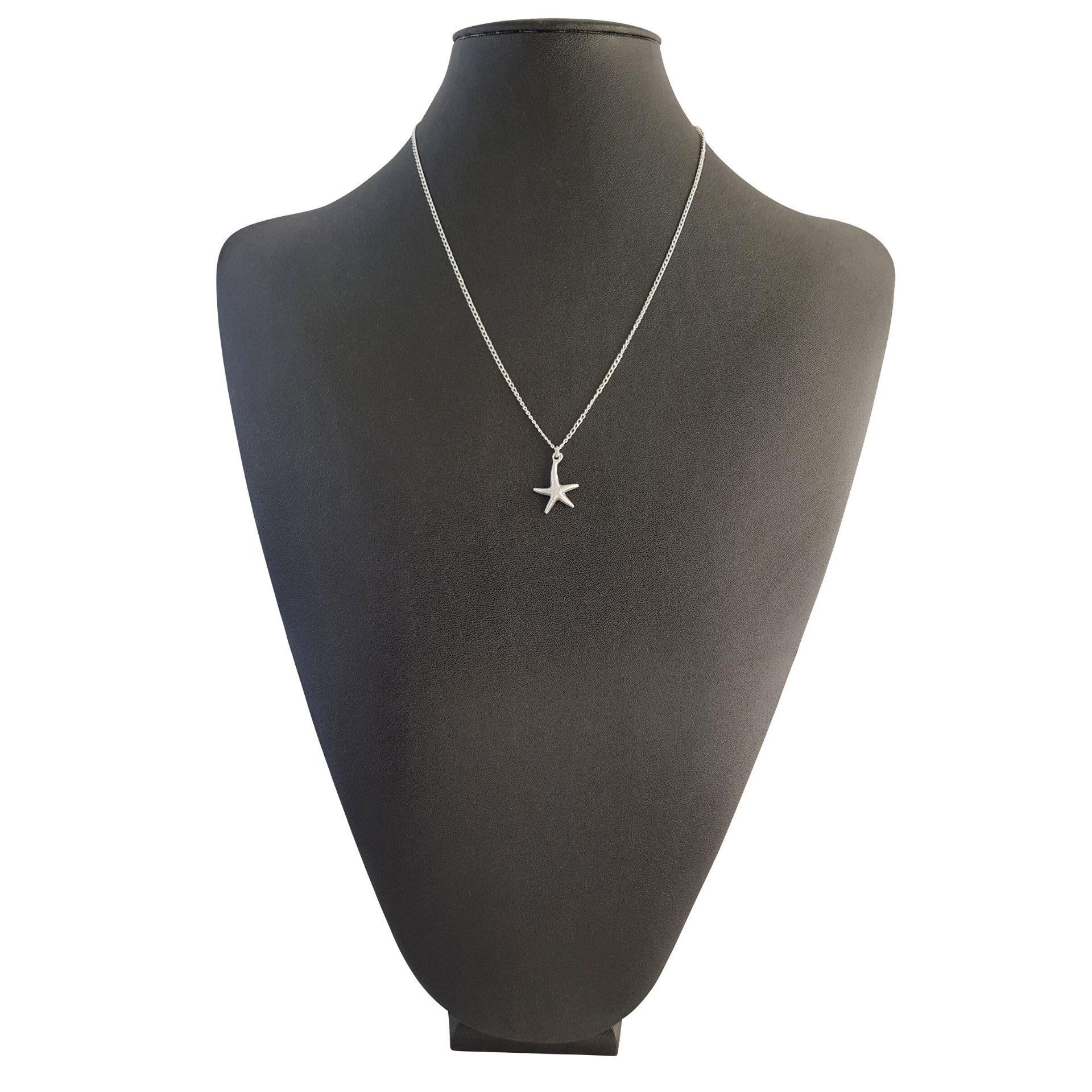 Starfish 2cm long x 1.5cm at widest point and comes on a 42cm or 45cm sterling silver chain.